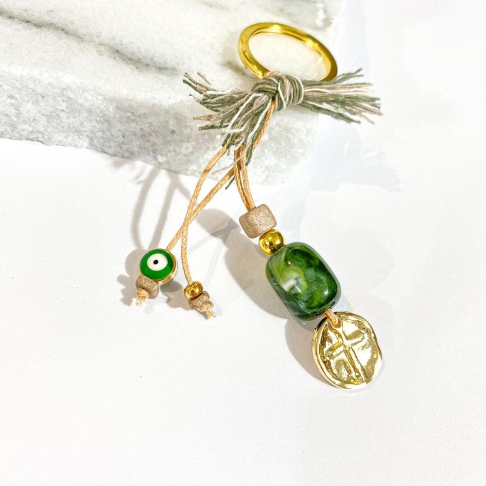 Μαρτυρικό Βάπτισης Μπρελόκ με Ακρυλικό Σμάλτο Μάτι και Επίχρυσο Σταυρό