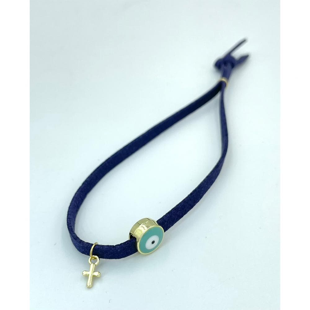 Μαρτυρικό Βάπτισης Βραχιόλι Μπλε Σκούρο Σουέτ με Ματάκι και Σταυρουδάκι