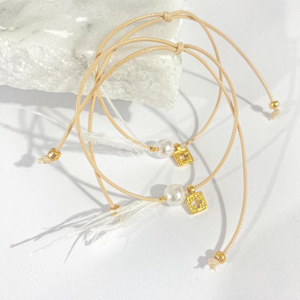 Μαρτυρικό Βάπτισης Βραχιόλι με Μεταξωτό Κορδόνι και Επίχρυσο Σταυρό 24κ