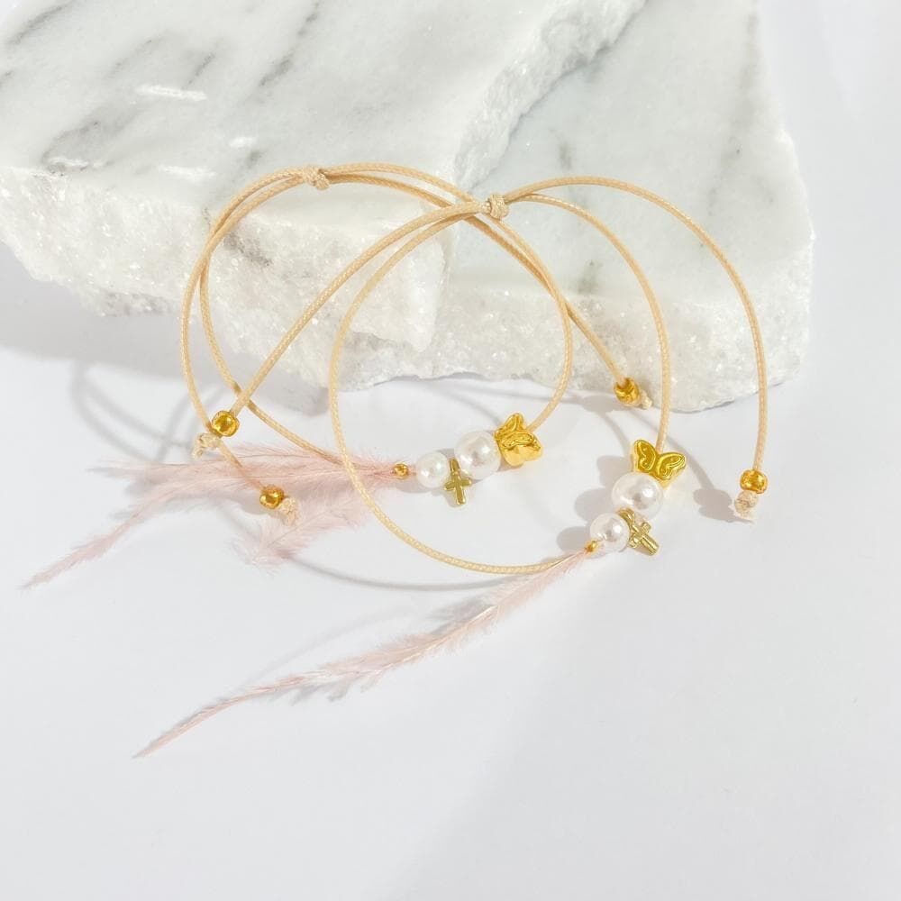 Μαρτυρικό Βάπτισης Βραχιόλι με Μεταξωτό Κορδόνι και Στοιχείο Πεταλούδα 24κ