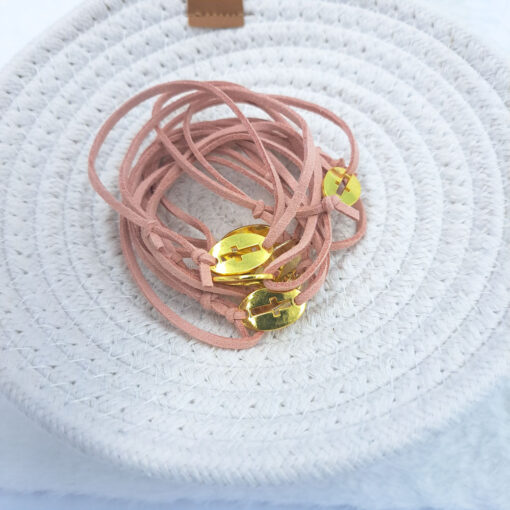 Μαρτυρικό Βραχιόλι σε ροζ απόχρωση με χρυσό σταυρό.