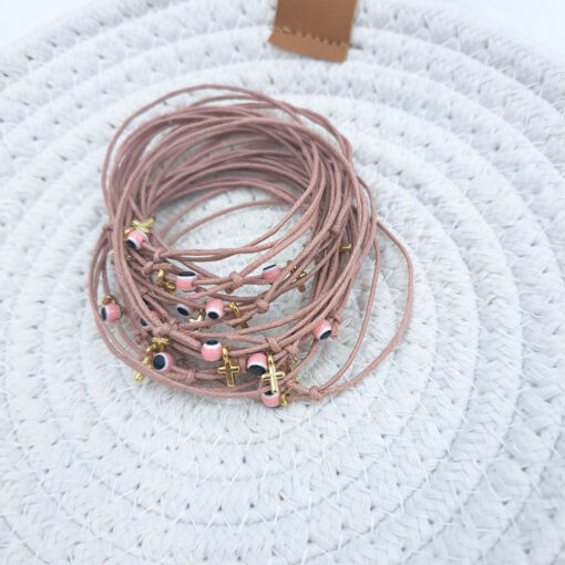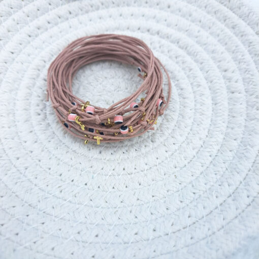 Μαρτυρικό Βραχιόλι σε ροζ απόχρωση με σταυρό και ροζ ματάκι.