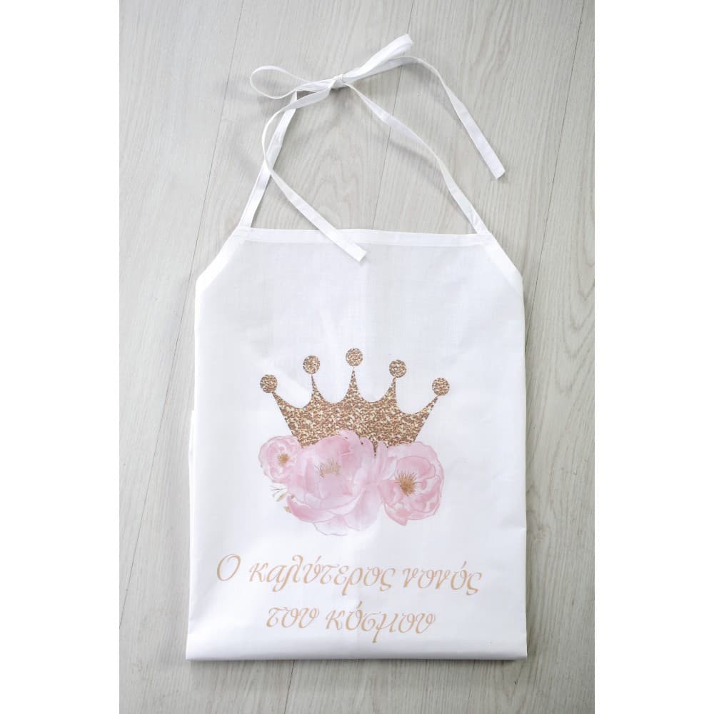 Βαπτιστική ποδιά νονάς ή νονού με κορώνα χρυσή.