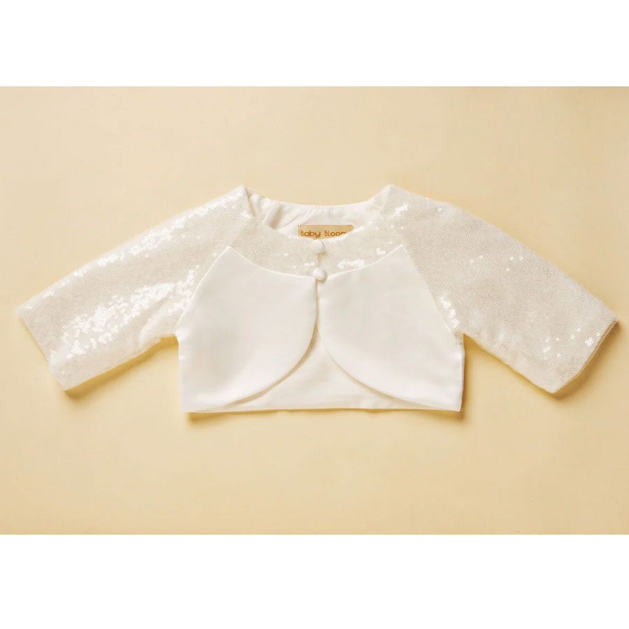 Μπολερό από συνδυασμό υφασμάτων από σατέν ντουσέζ και ύφασμα από πάγιετα σε off white απόχρωση.