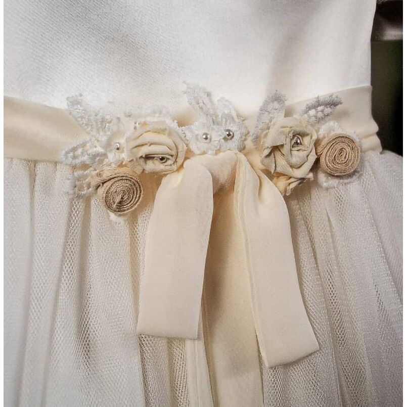 Η Doukissa είναι ένα off–white princess dress από soft cotton τούλινη φούστα και εξαιρετικής ποιότητας σατέν για το μπούστο.
