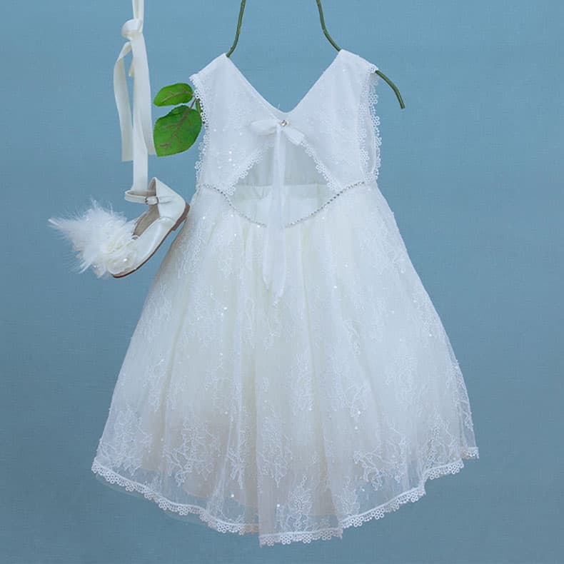 Η Jane είναι ένα ρομαντικό φόρεμα βάπτισης από γαλλική δαντέλα σε ιβουάρ χρώμα.