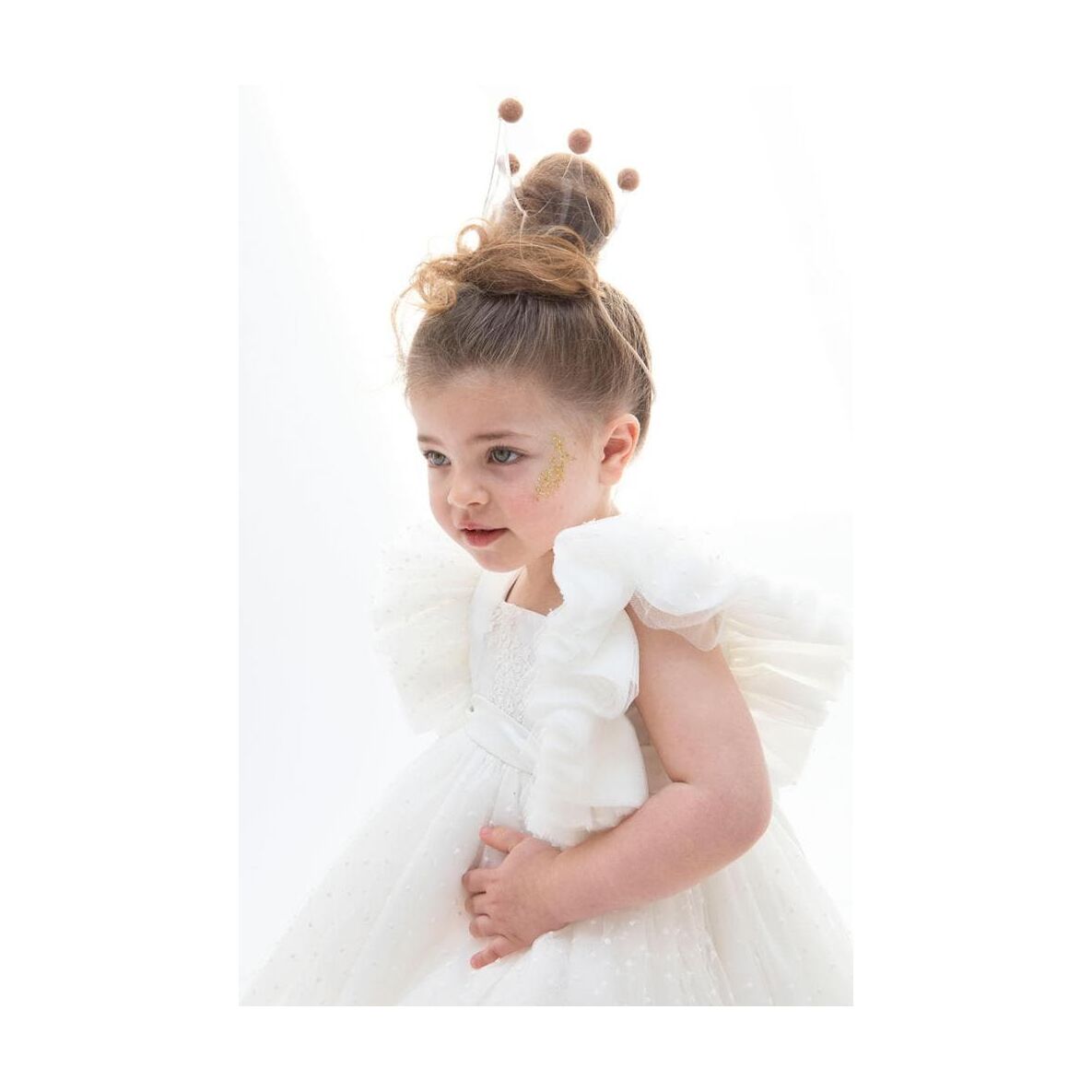 Η Michelle είναι ένα αέρινο ασύμμετρο εκρού φόρεμα βάπτισης που θα σας καταπλήξει.