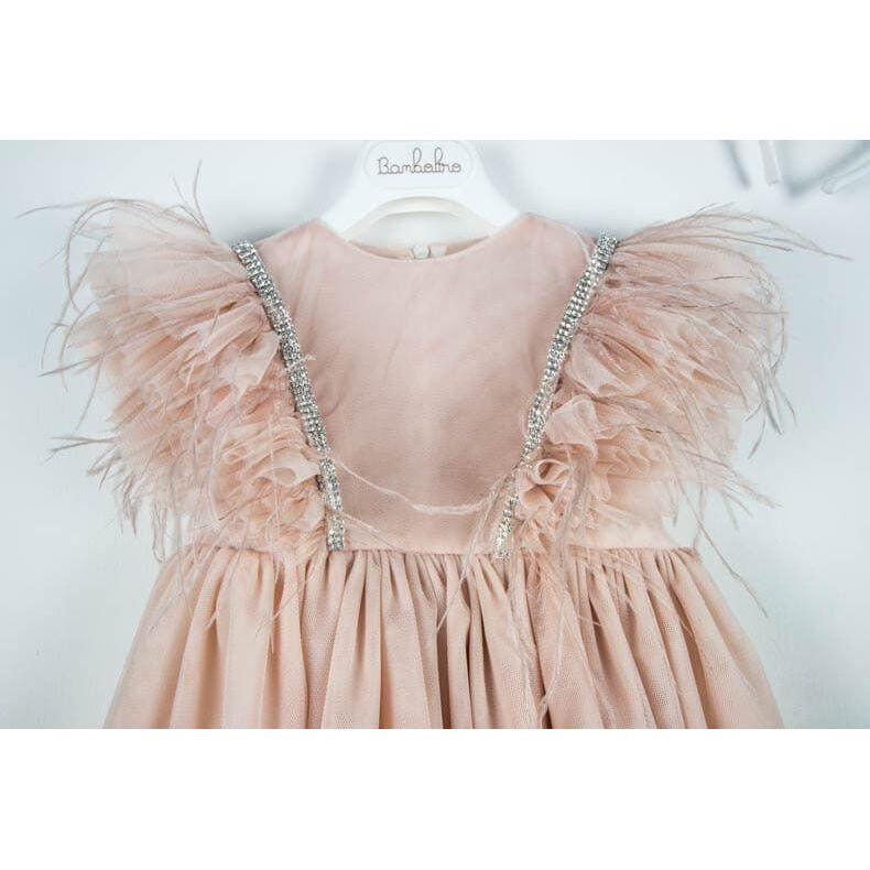 Η Vera είναι ένα κομψό φόρεμα σε vintage ροζ χρώμα από φίνο τούλι διακοσμημένο με μοναδικά φτερά και τρέσα swarovski.