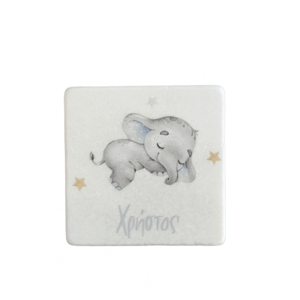 Μπομπονιέρα Βάπτισης Εκτυπωμένο Μάρμαρο Σουβέρ Ελέφαντας 8Χ8