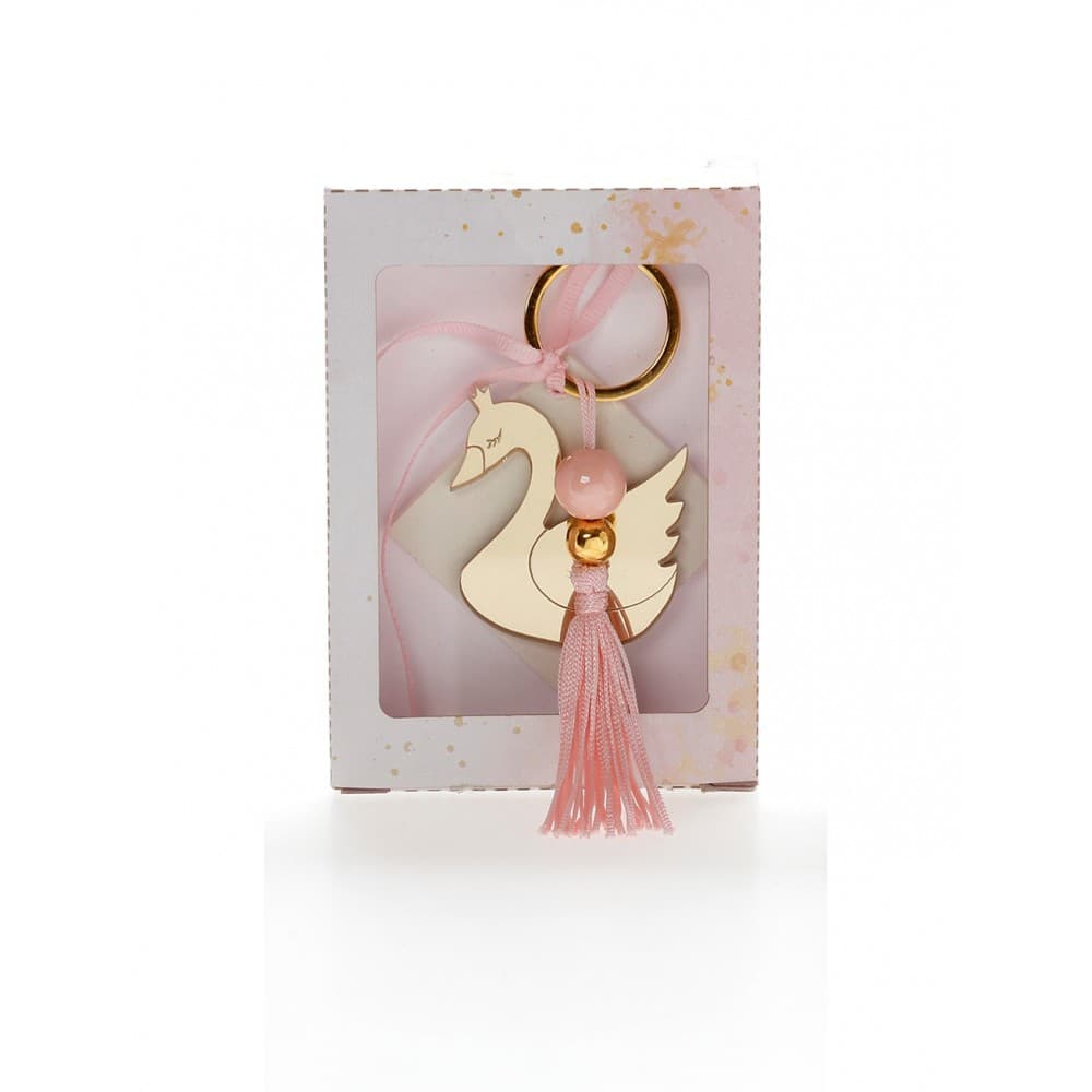 Μπομπονιέρα σε χάρτινο κουτάκι ροζ με αρωματική βάση ρόμβος και χρυσό πλέξιγκλας με σχέδιο κύκνος.