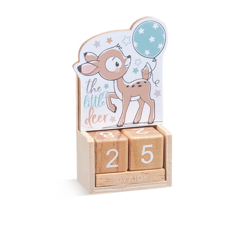 Ξύλινο ημερολόγιο με κύβους σε natural χρώμα. Διακοσμημένο με κοπτικό Ελαφάκι.