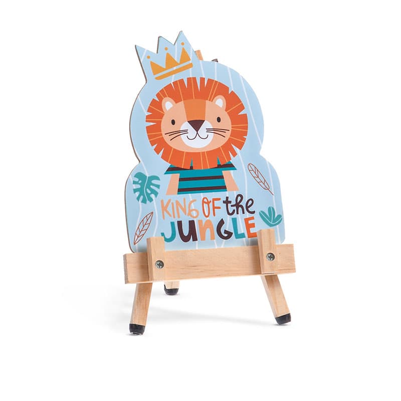 Ξύλινο καδράκι Λιοντάρι σε natural καβαλέτο.