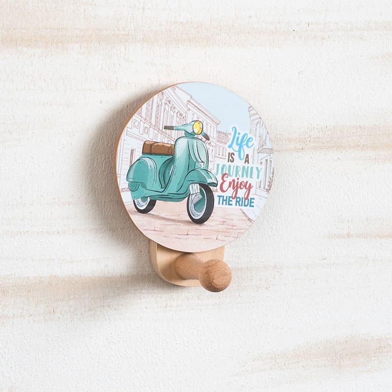 Ξύλινη natural κρεμάστρα τοίχου, διακοσμημένη με στρογγυλό κοπτικό Βέσπα.