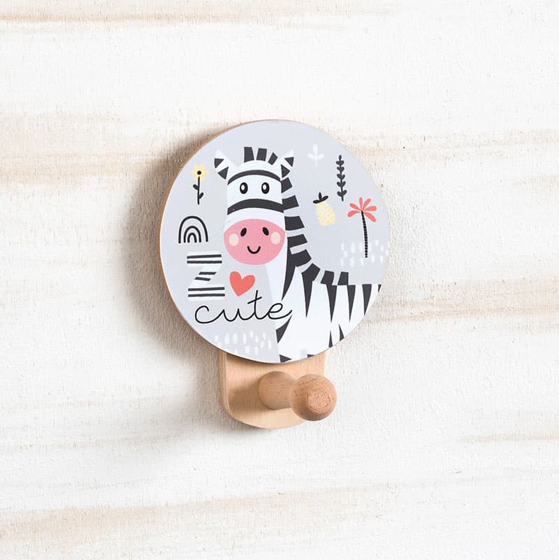 Ξύλινη natural κρεμάστρα τοίχου, διακοσμημένη με στρογγυλό κοπτικό Ζέβρα.