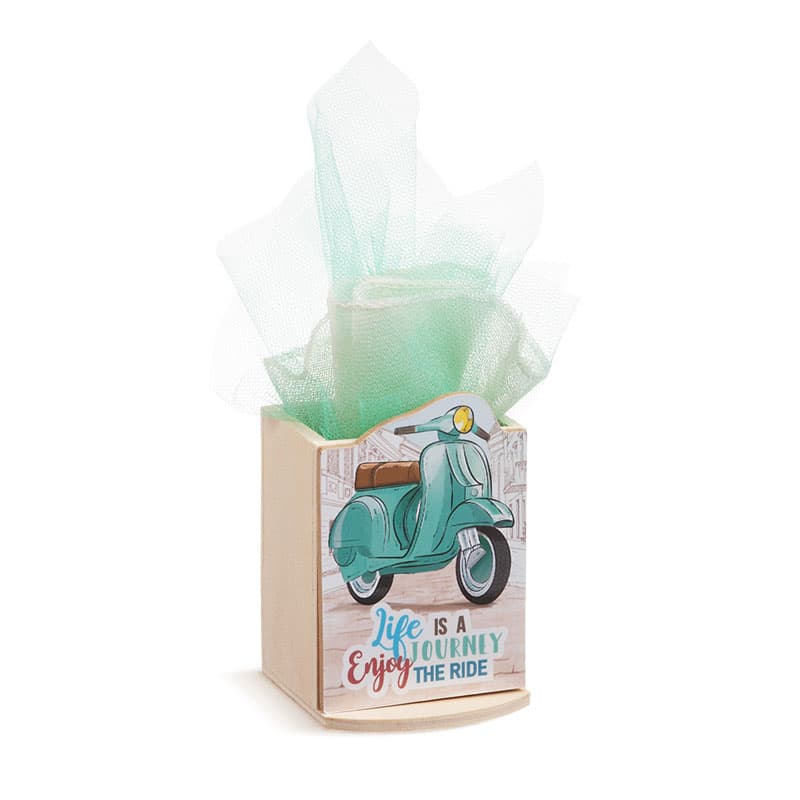 Ξύλινη μολυβοθήκη σε natural χρώμα. Διακοσμημένο με κοπτικό Βέσπα.
