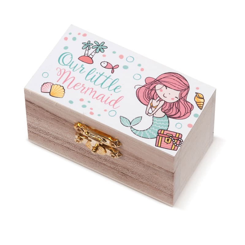 Ξύλινο natural σεντούκι με μεταλλικό κούμπωμα. Είναι διακοσμημένο με αυτοκόλλητο print Γοργόνα.