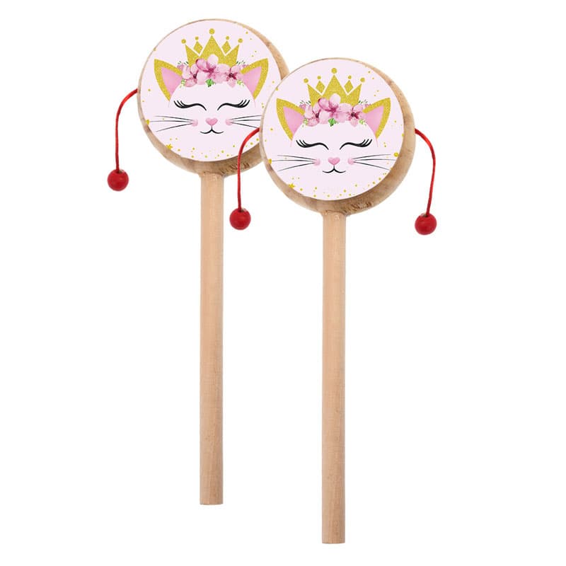 Ξύλινο natural τυμπανάκι με αυτοκόλλητο print Γάτα με διαφορετικό σχέδιο μπρος-πίσω.