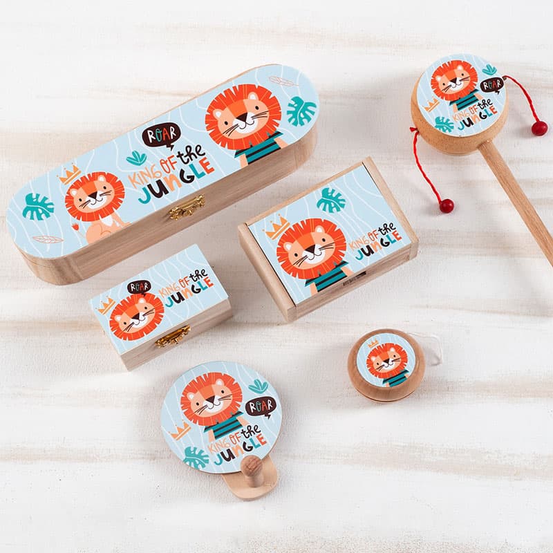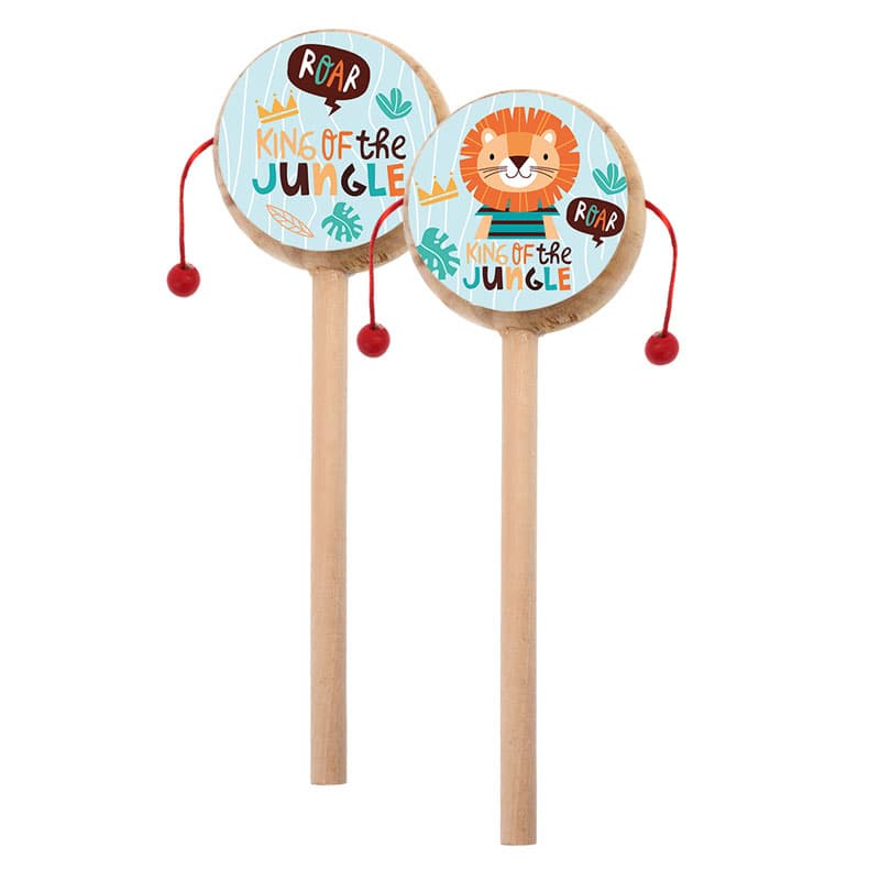 Ξύλινο natural τυμπανάκι με αυτοκόλλητο print Λιοντάρι με διαφορετικό σχέδιο μπρος-πίσω.