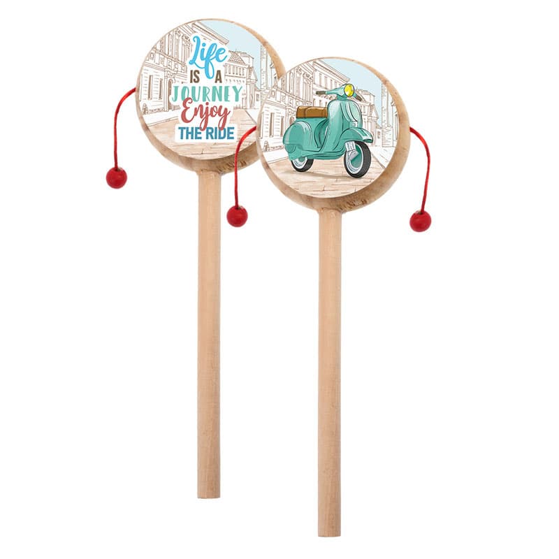 Ξύλινο natural τυμπανάκι με αυτοκόλλητο print Βέσπα με διαφορετικό σχέδιο μπρος-πίσω.