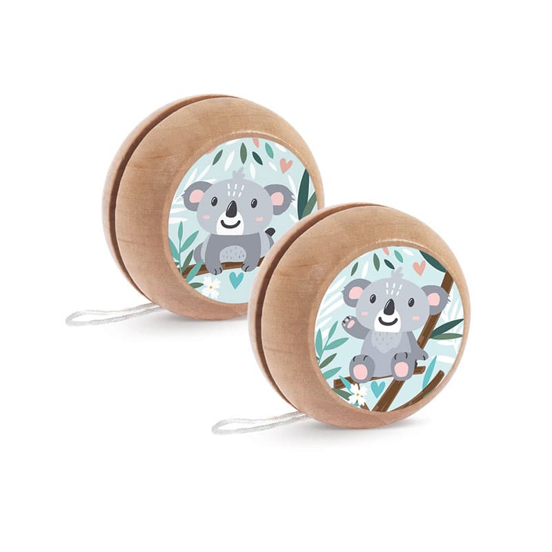 Ξύλινο natural γιο-γιο με σκοινάκι. Είναι διακοσμημένο με αυτοκόλλητο print Koala με διαφορετικό σχέδιο μπρος-πίσω.