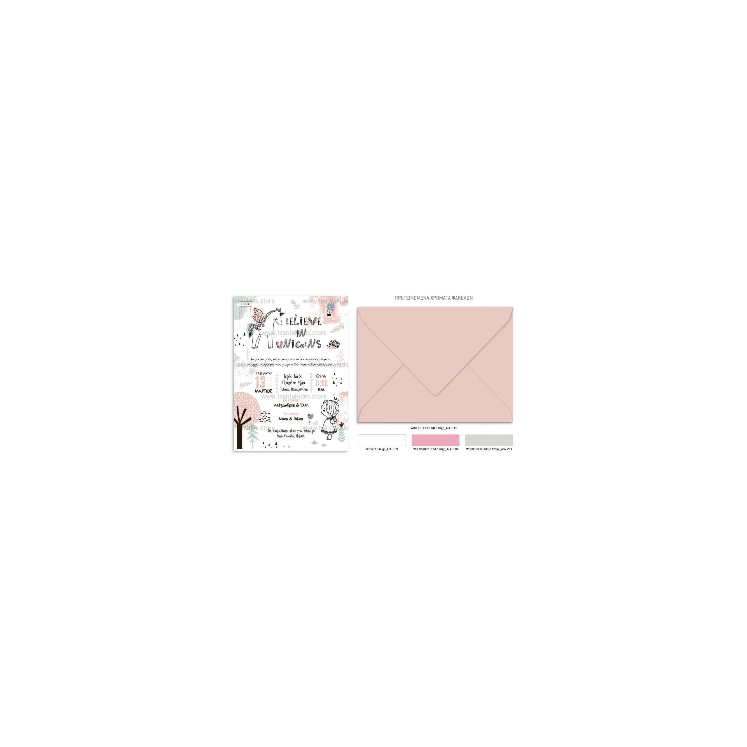 Προσκλητήριο βάπτισης για κορίτσι με θέμα Μονόκερος.