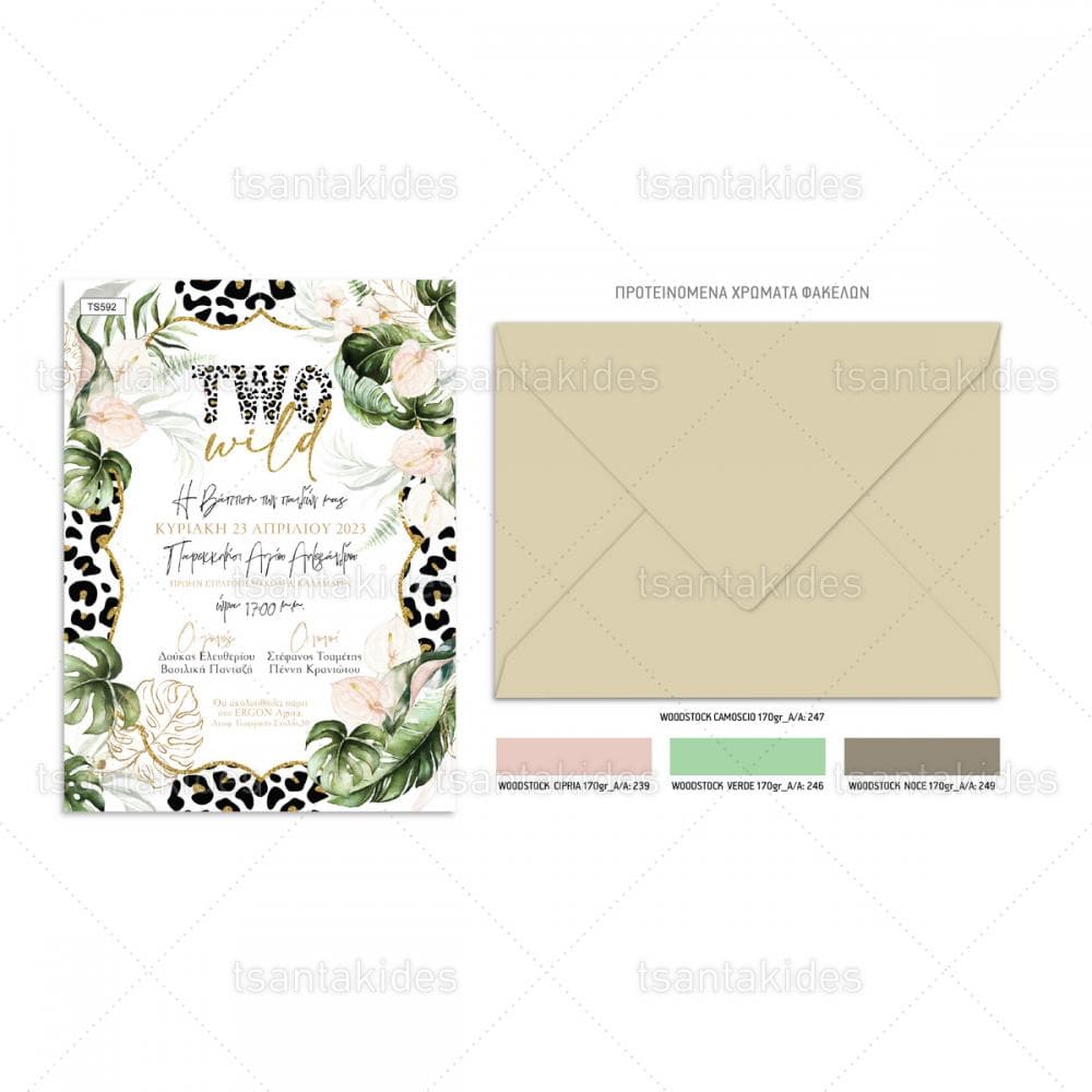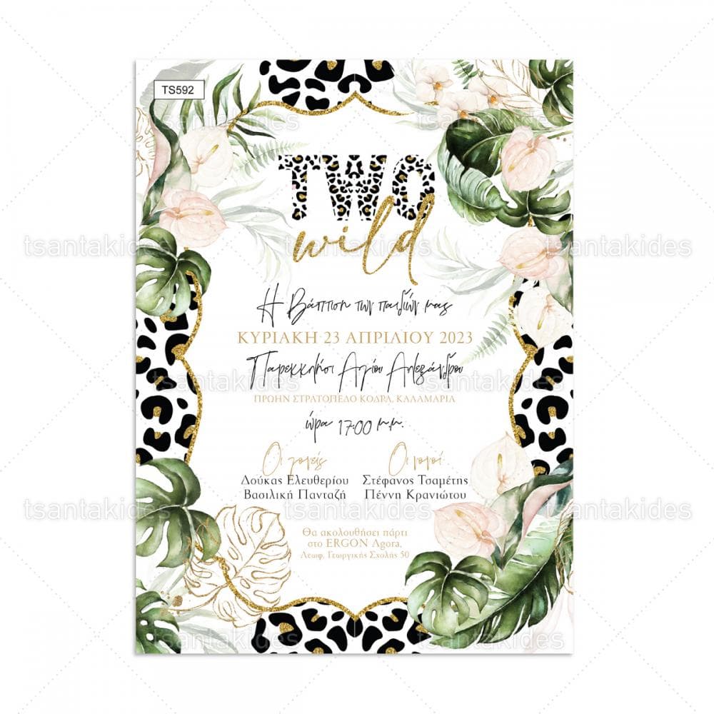 Προσκλητήριο βάπτισης για δίδυμα με θέμα Jungle
