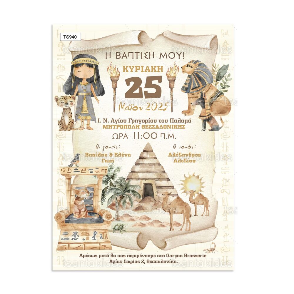 Προσκλητήριο βάπτισης για κορίτσι με θέμα Ancient Egypt Girl
