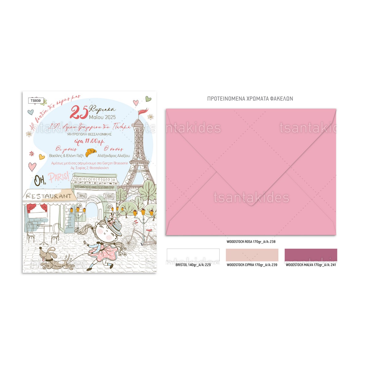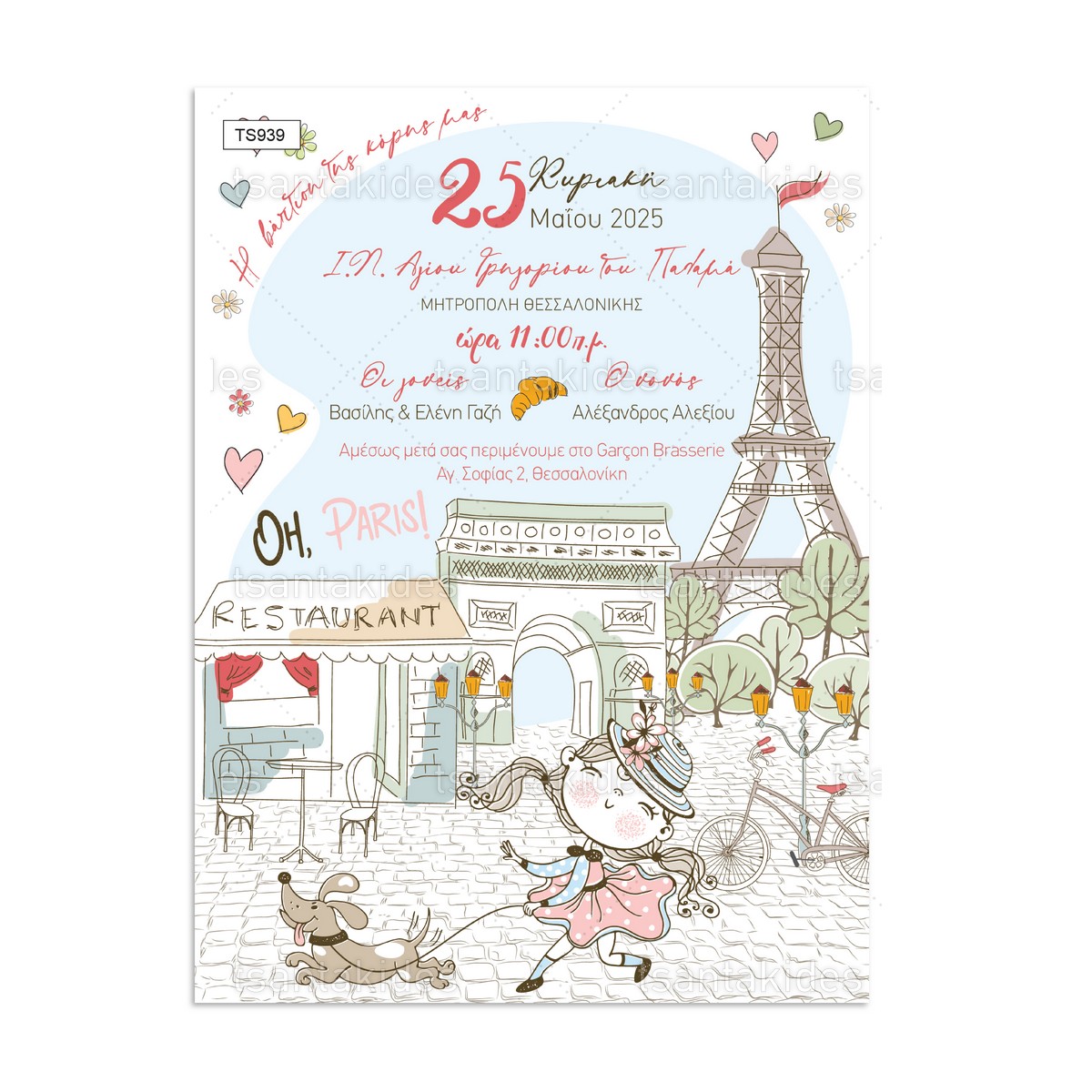 Προσκλητήριο βάπτισης για κορίτσι με θέμα Paris