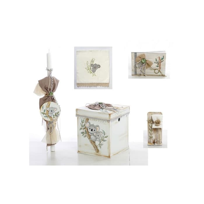 Χειροποίητο σετ βάπτισης με θέμα κοάλα ζωγραφισμένο στο χέρι