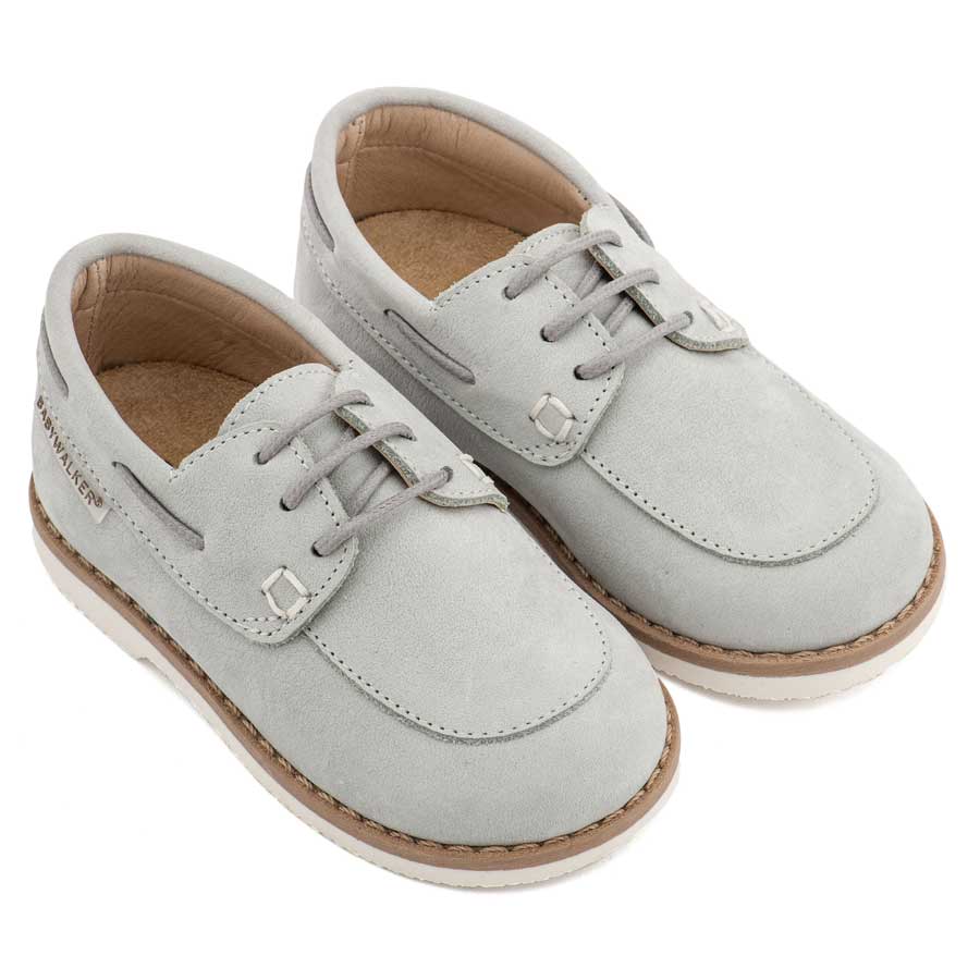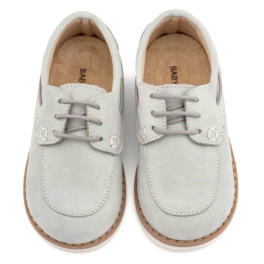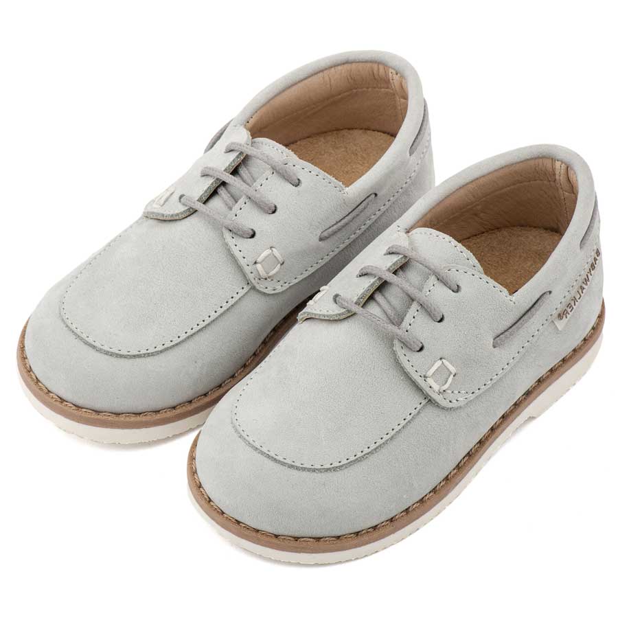 Δετό Δερμάτινο Μοκασίνι από Δέρμα Ναμπούκ με Κορδόνι σε Λευκό Χρώμα