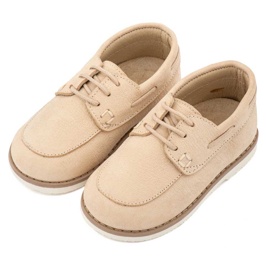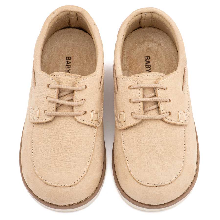 Δετό Δερμάτινο Μοκασίνι από Δέρμα Ναμπούκ με Κορδόνι σε Μπεζ Χρώμα