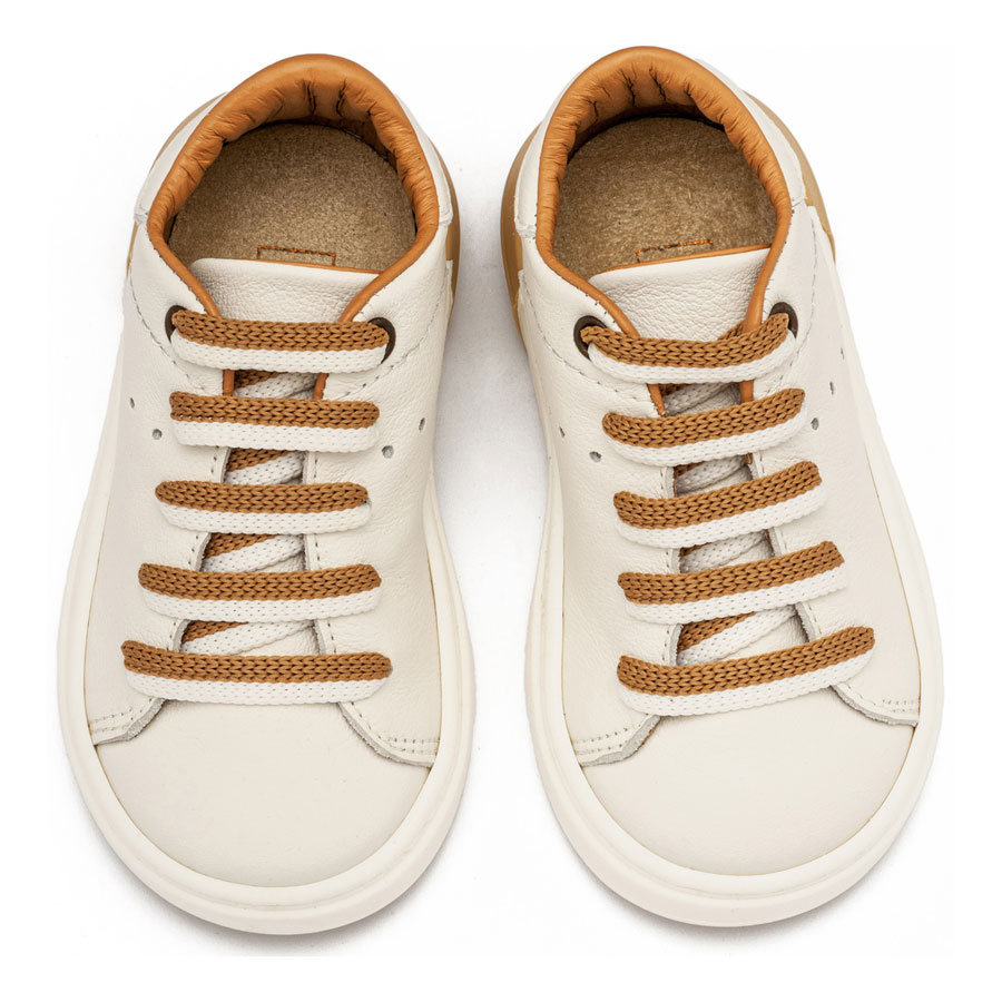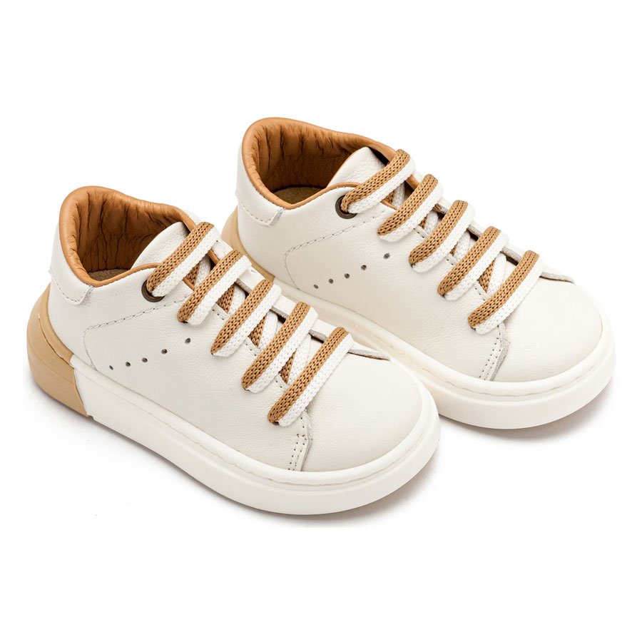 Δερμάτινο Δετό Sneaker με Δίχρωμο Κορδόνι σε Λευκό Μπεζ Χρώμα