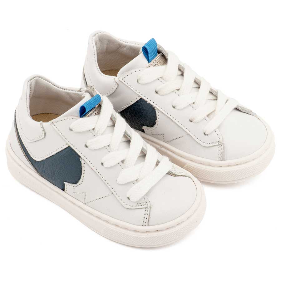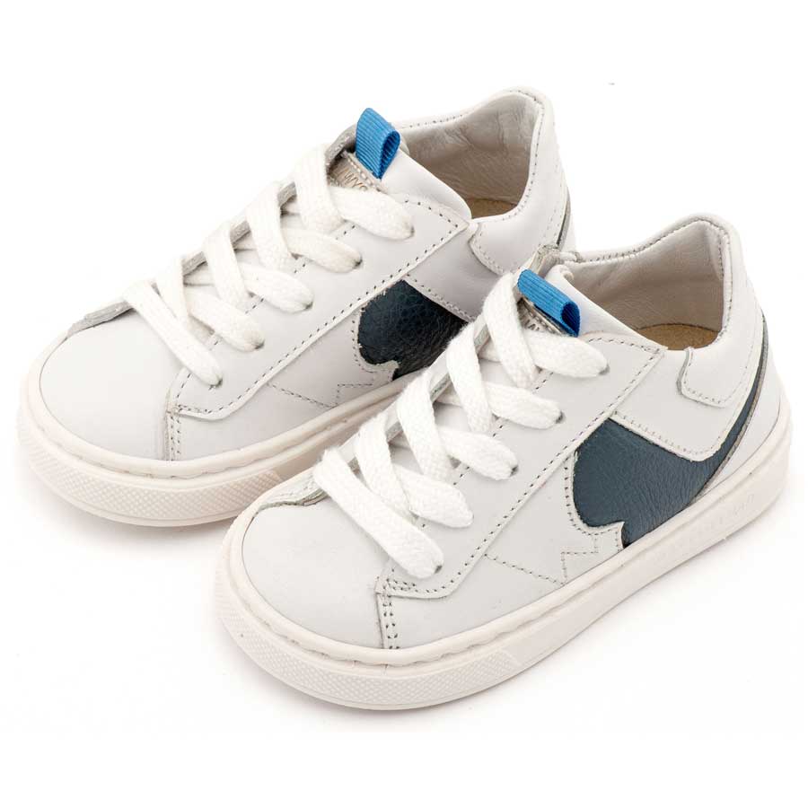Δερμάτινο Δίχρωμο Sneaker Δετό σε Λευκό Μπλε Χρώμα
