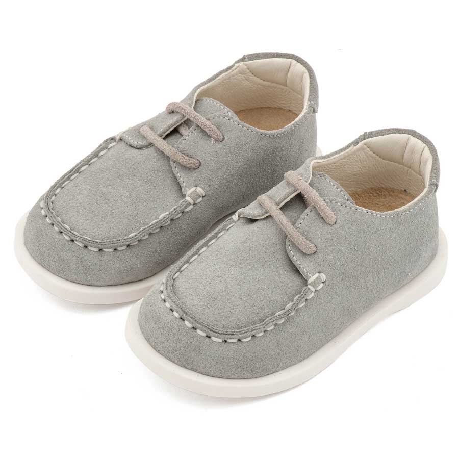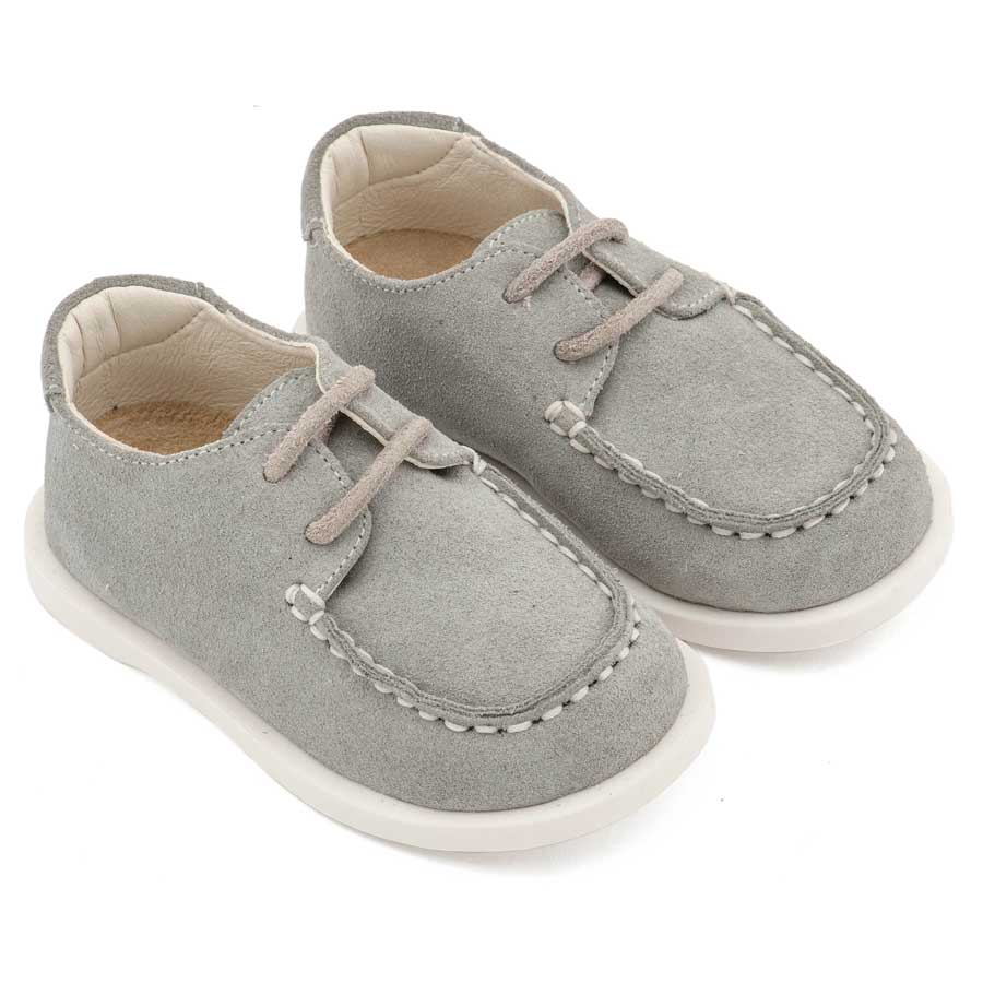 Καστόρινο Δετό Μοκασίνι με Δερμάτινο Κορδόνι σε Γκρι Χρώμα