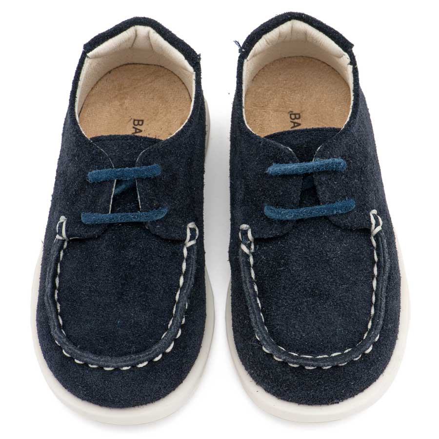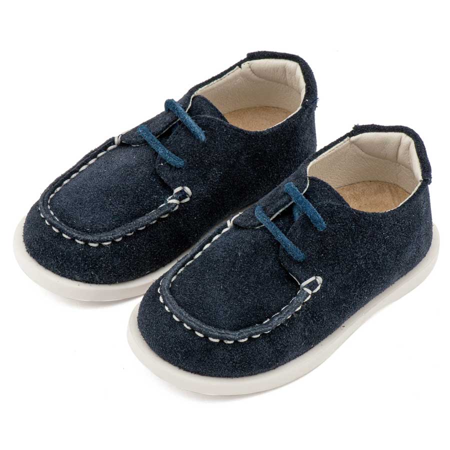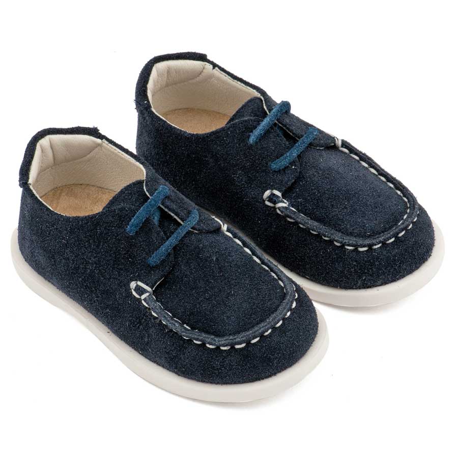 Καστόρινο Δετό Μοκασίνι με Δερμάτινο Κορδόνι σε Μπλε Χρώμα
