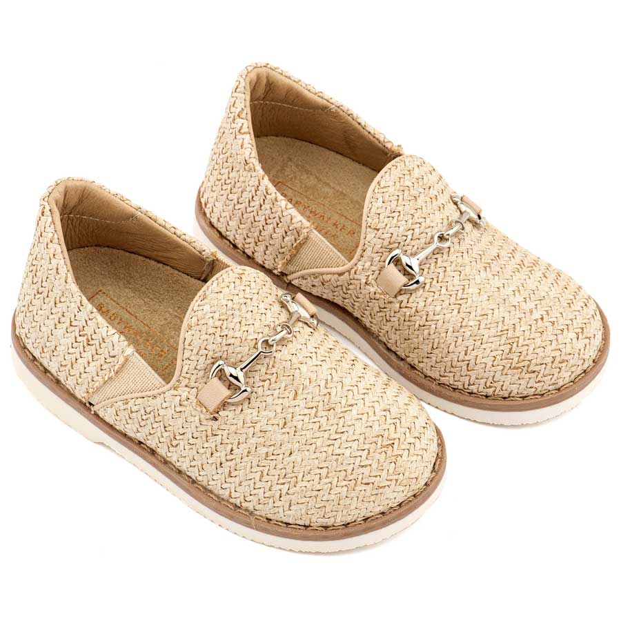 Loafers απο Ύφασμα Ψάθα με Δερμάτινες Λεπτομέρειες σε Μπεζ Χρώμα