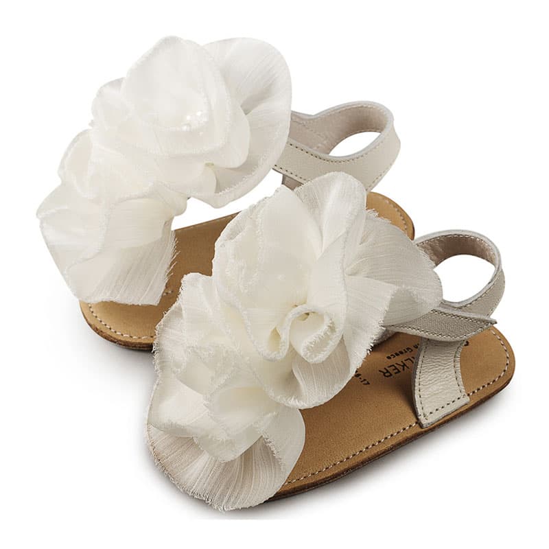Δερμάτινο Πέδιλο με Chiffon λουλούδια από Δέρμα Πέρλα σε Εκρού χρώμα