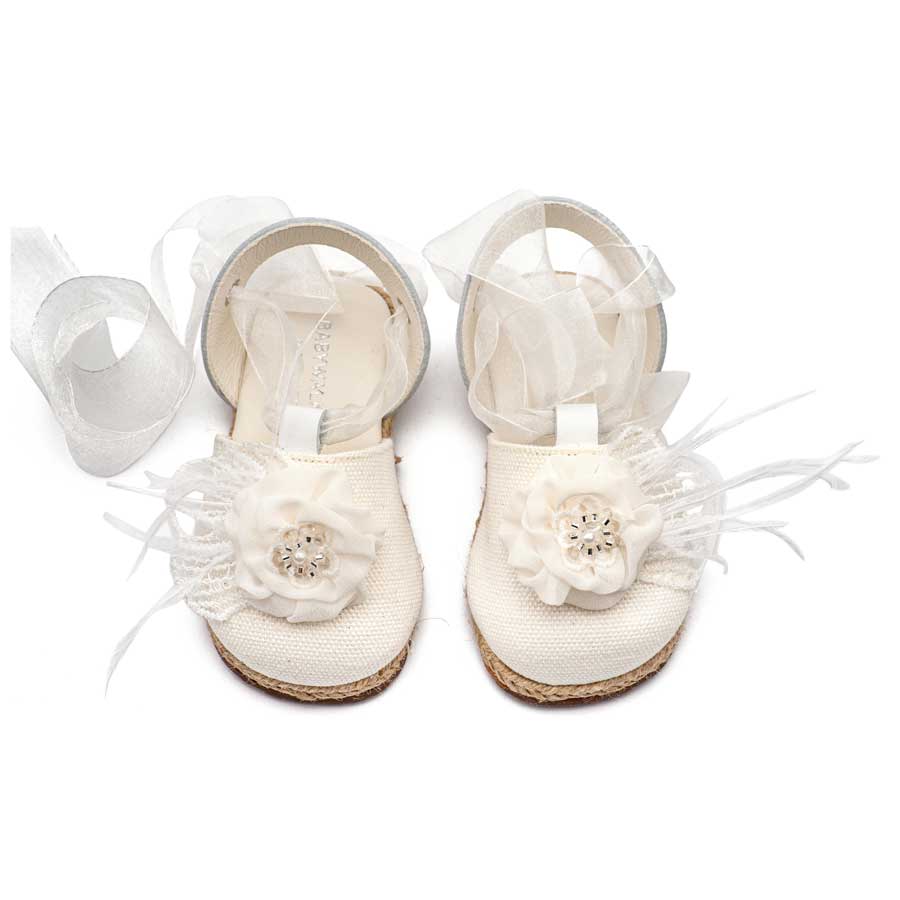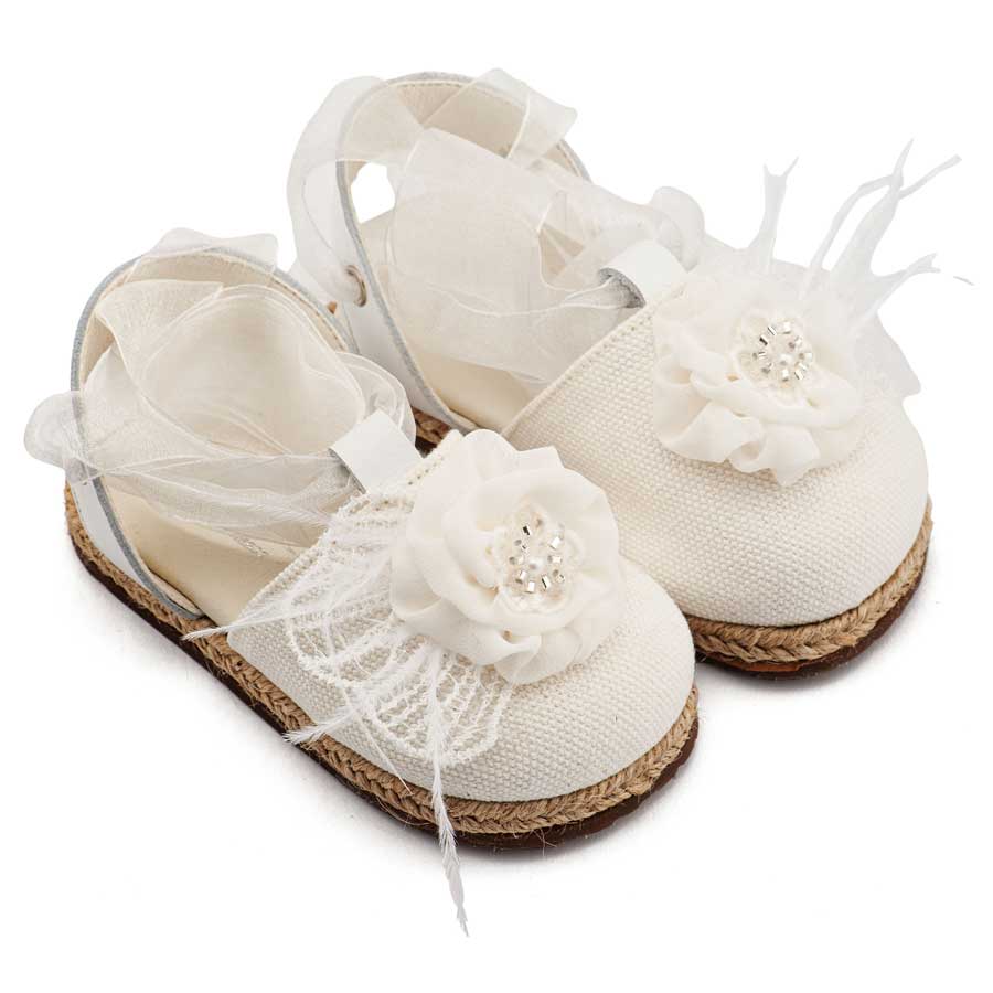 Υφασμάτινη Εσπαντρίγια με Χειροποίητο Διακοσμητικό με Πούπουλα σε Λευκό Χρώμα