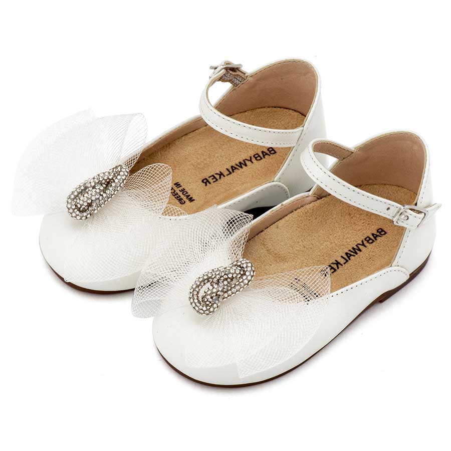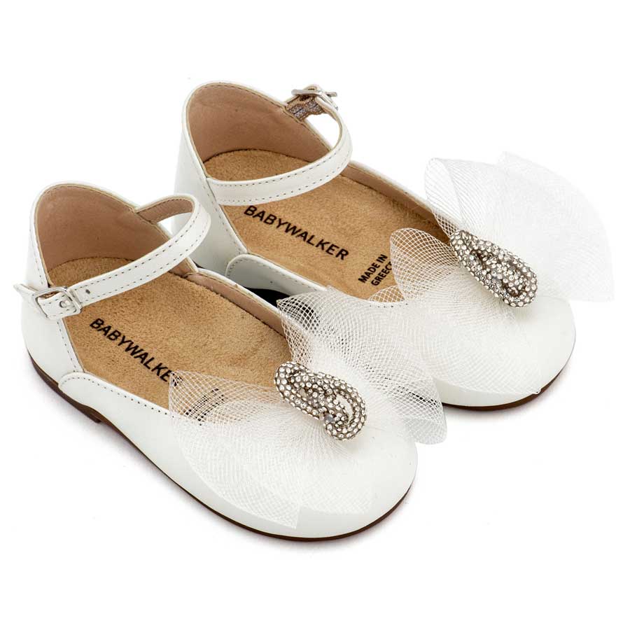 Babywalker Γαλλικό Γοβάκι με Φιόγκο και Στρας BW4890 Εκρού
