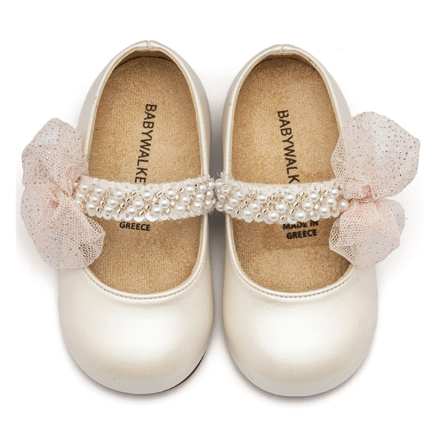 Babywalker Γοβάκι Μονή Μπαρέτα Διακοσμημένη με Χειροποίητο Διακοσμητικό BS3596 Εκρού