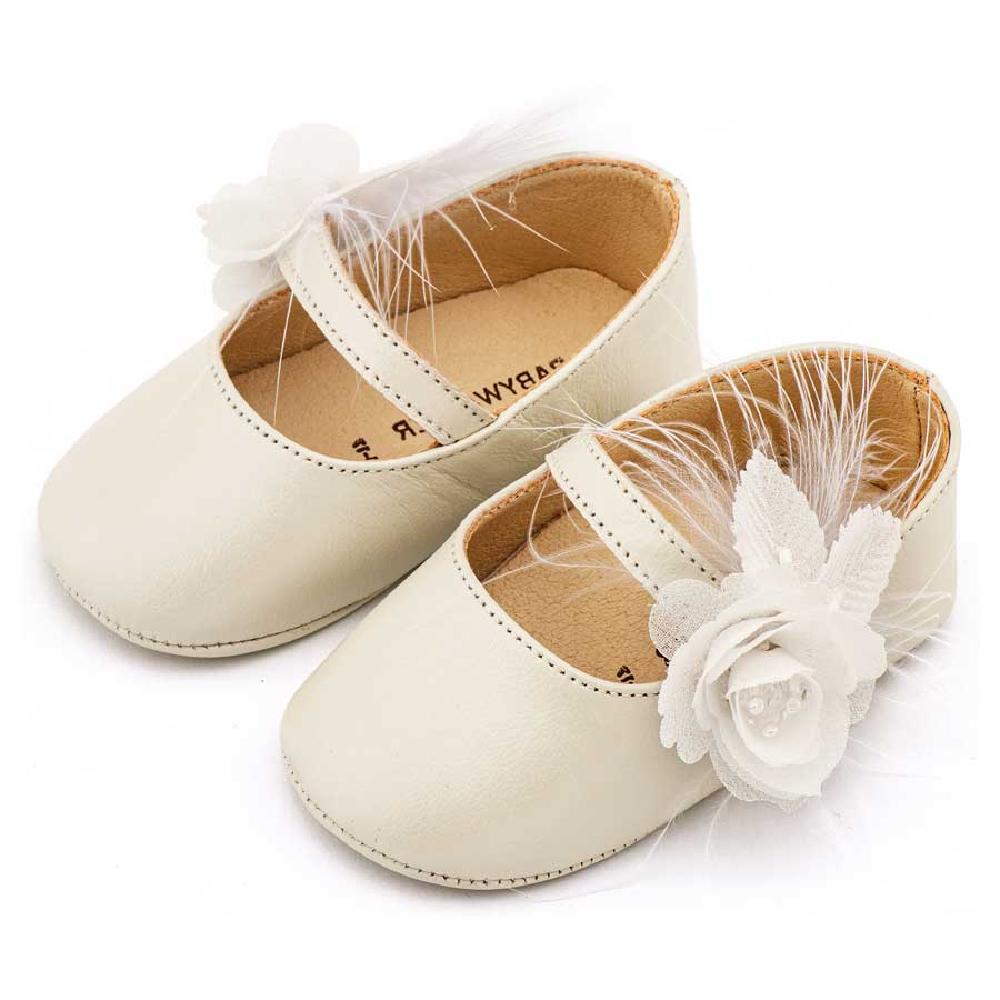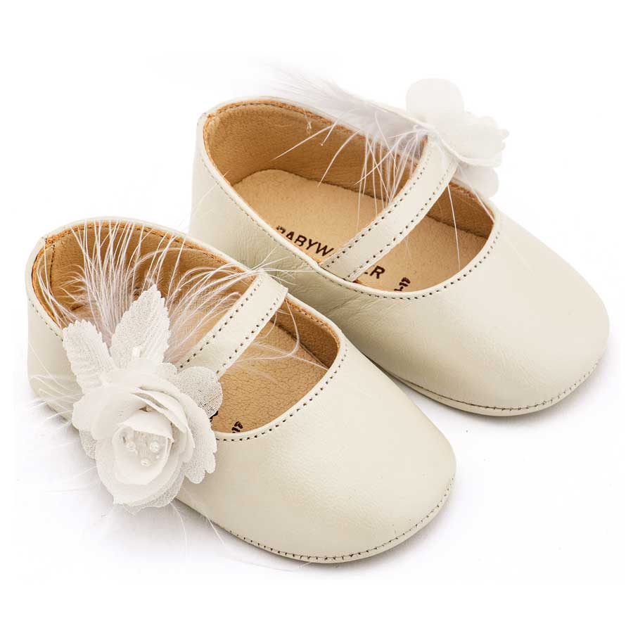 Babywalker Γοβάκι Μονή Μπαρέτα Διακοσμημένο με Λουλούδι και Πούπουλα MI1664 Εκρού