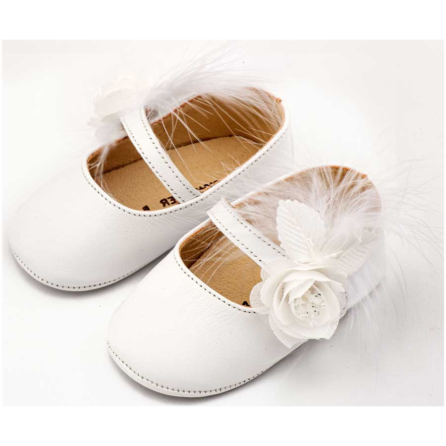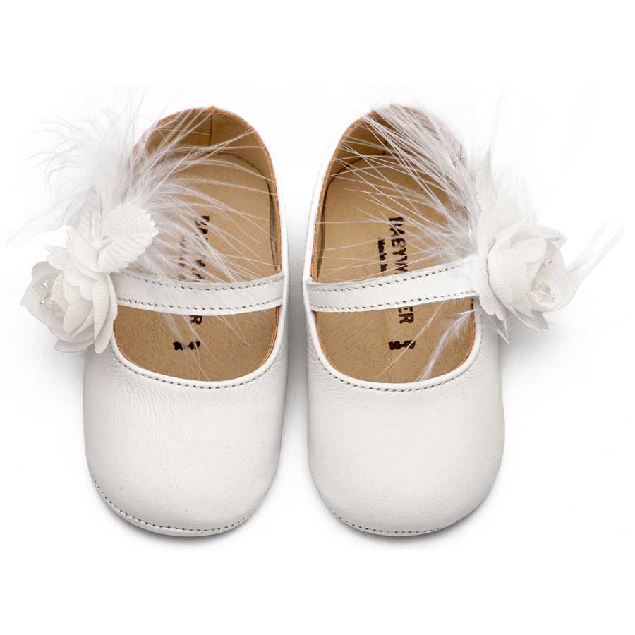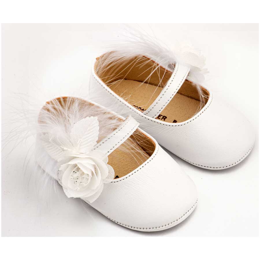 Babywalker Γοβάκι Μονή Μπαρέτα Διακοσμημένο με Λουλούδι και Πούπουλα MI1664 Λευκό