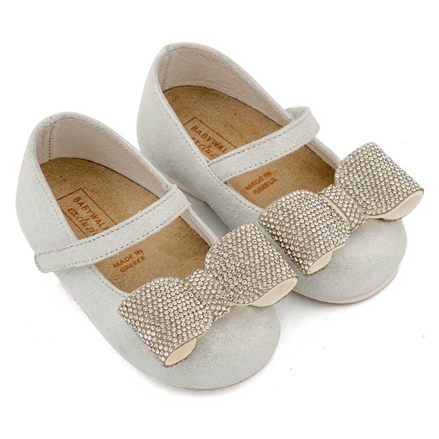 Babywalker Γοβάκι Μονή Μπαρέτα Διακοσμημένο με Στρασένιο Φιόγκο EXC5883 Λευκό Πάγου