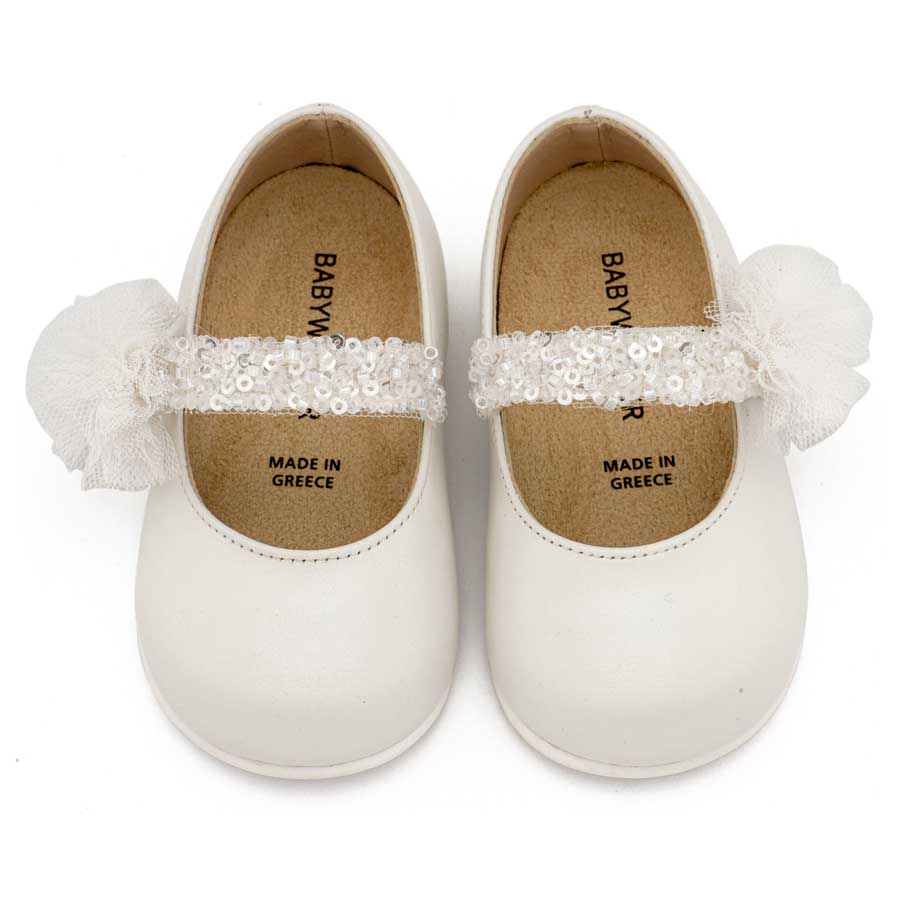 Babywalker Γοβάκι Μονή Μπαρέτα Διακοσμημένο με Τρέσα και Τούλινο Πον Πον PRI2657 Λευκό