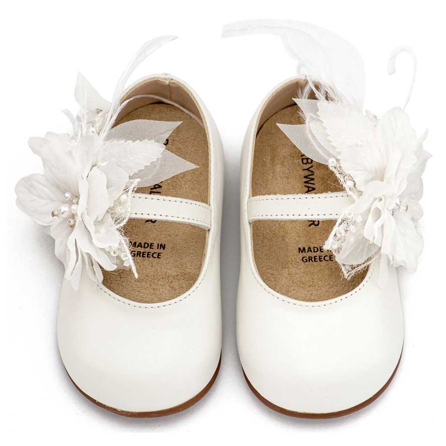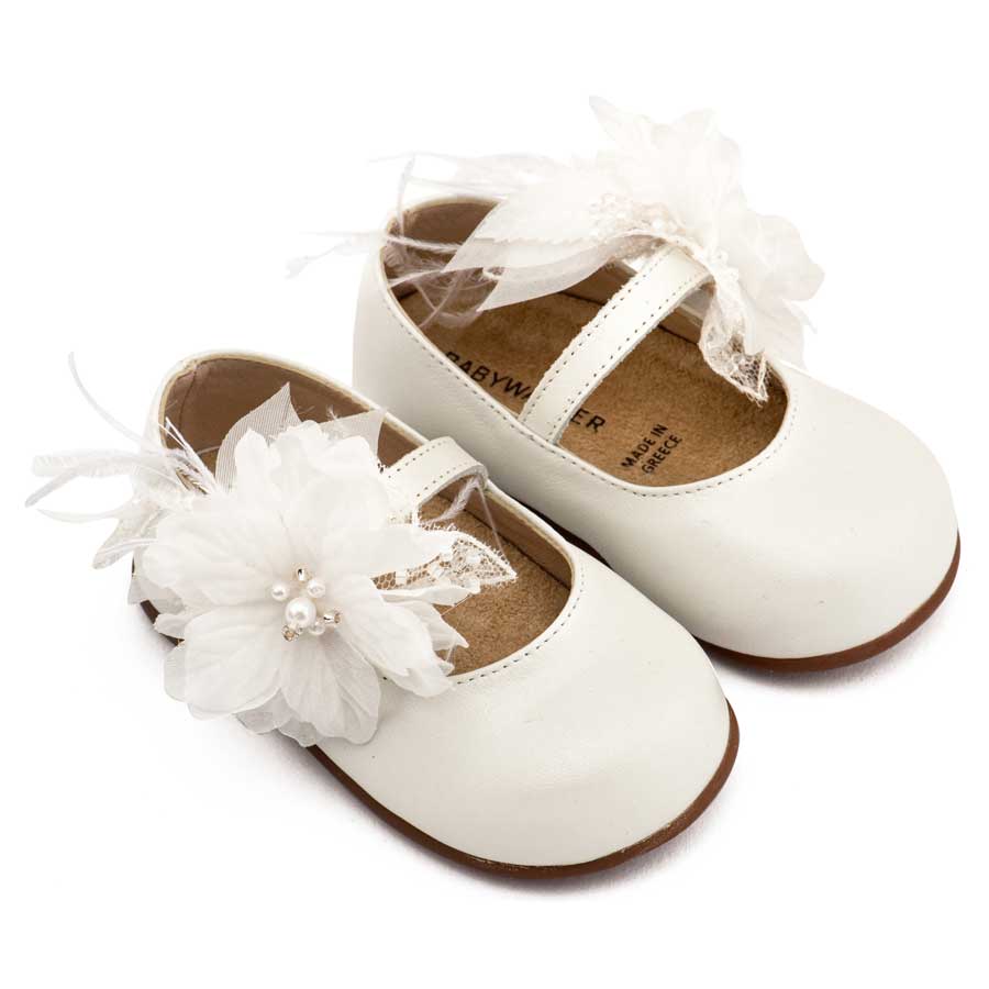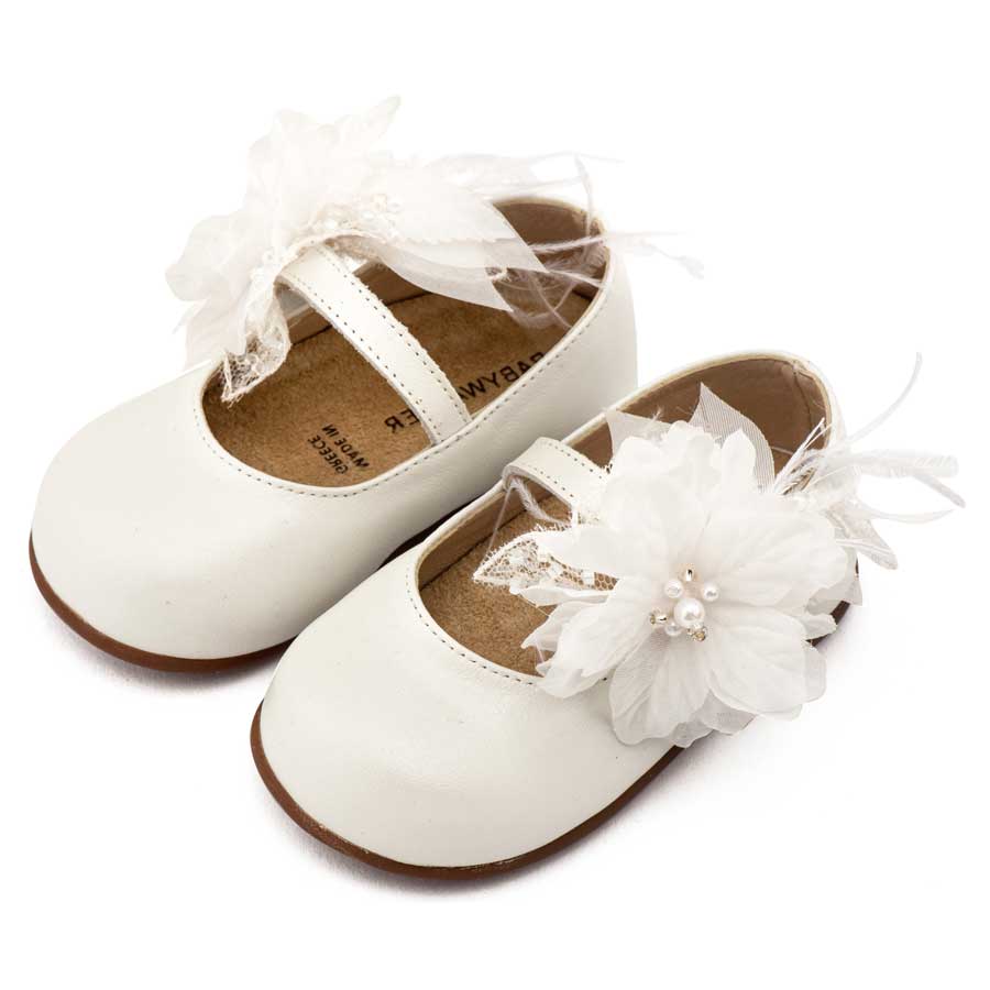 Babywalker Γοβάκι Μονή Μπαρέτα Χειροποίητο Λουλούδι με Πούπουλα PRI2658 Εκρού