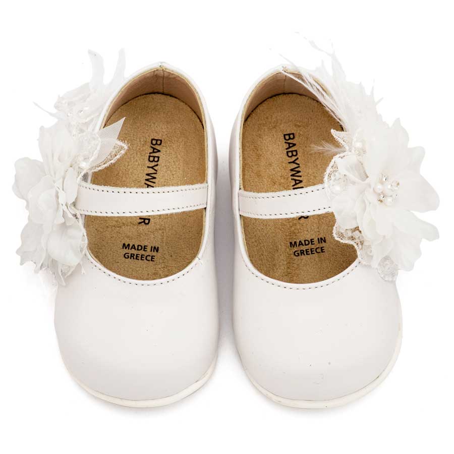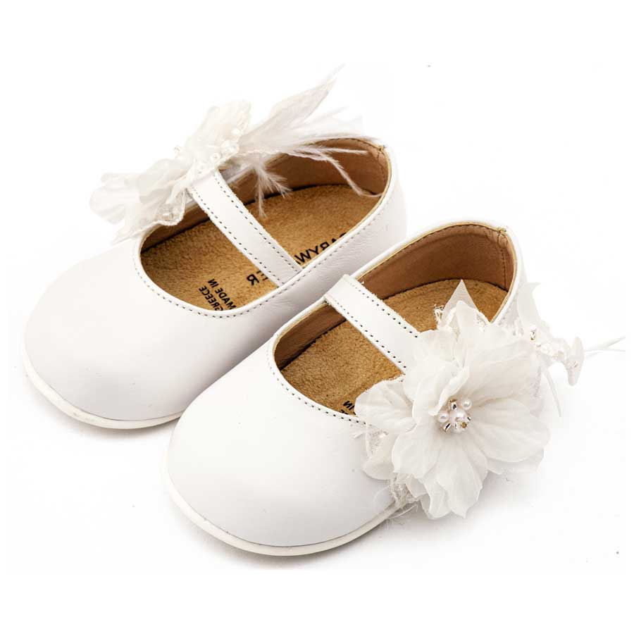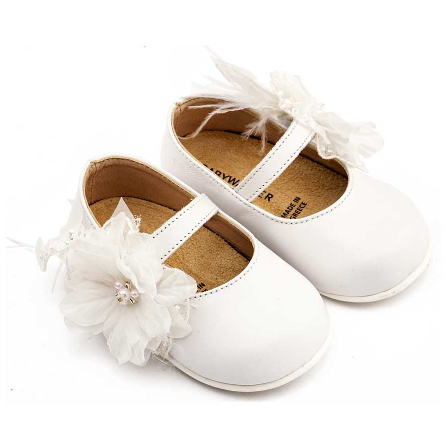 Babywalker Γοβάκι Μονή Μπαρέτα Χειροποίητο Λουλούδι με Πούπουλα PRI2658 Λευκό