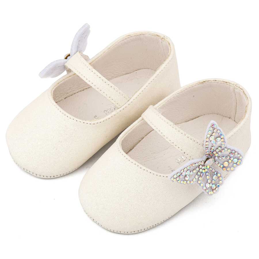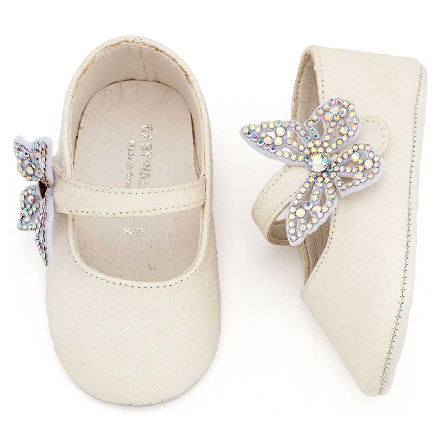 Babywalker Γοβάκι Μονή Μπαρέτα Χρατς με Στρασένια Πεταλούδα MI1658 Λευκό