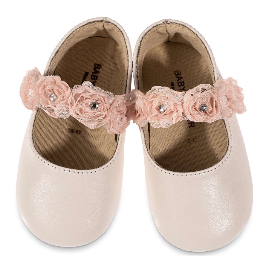 Babywalker Γοβακι Μονή Μπαρέτα με Chiffon Λουλούδια MI1638 Εκρού Ροζ
