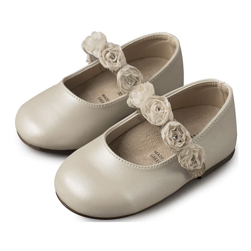 Babywalker Γοβάκι Μονή Μπαρέτα με Λουλούδια BS3523 Εκρού