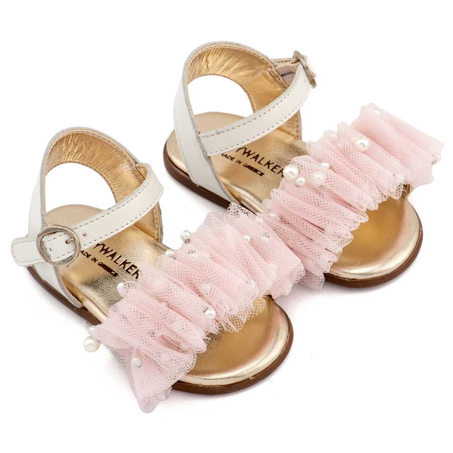 Babywalker Πέδιλο με Χειροποίητο Διακοσμητικό απο Τούλι και PRI2656 Εκρού Ροζ